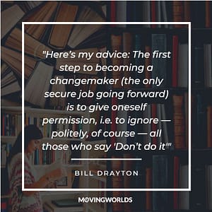 1. “Here’s my advice: The first step to becoming a changemaker (the only secure job going forward) is to give oneself permission, i.e. to ignore — politely, of course — all those who say ‘Don’t do it’” ― Bill Drayton, social entrepreneurship pioneer & Founder of Ashoka